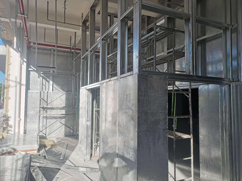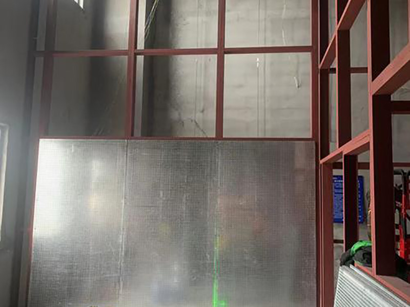中控室抗爆墻做法:橫向龍骨槽鋼和豎向龍骨槽鋼的間距1200*12,龍骨槽鋼按照背...